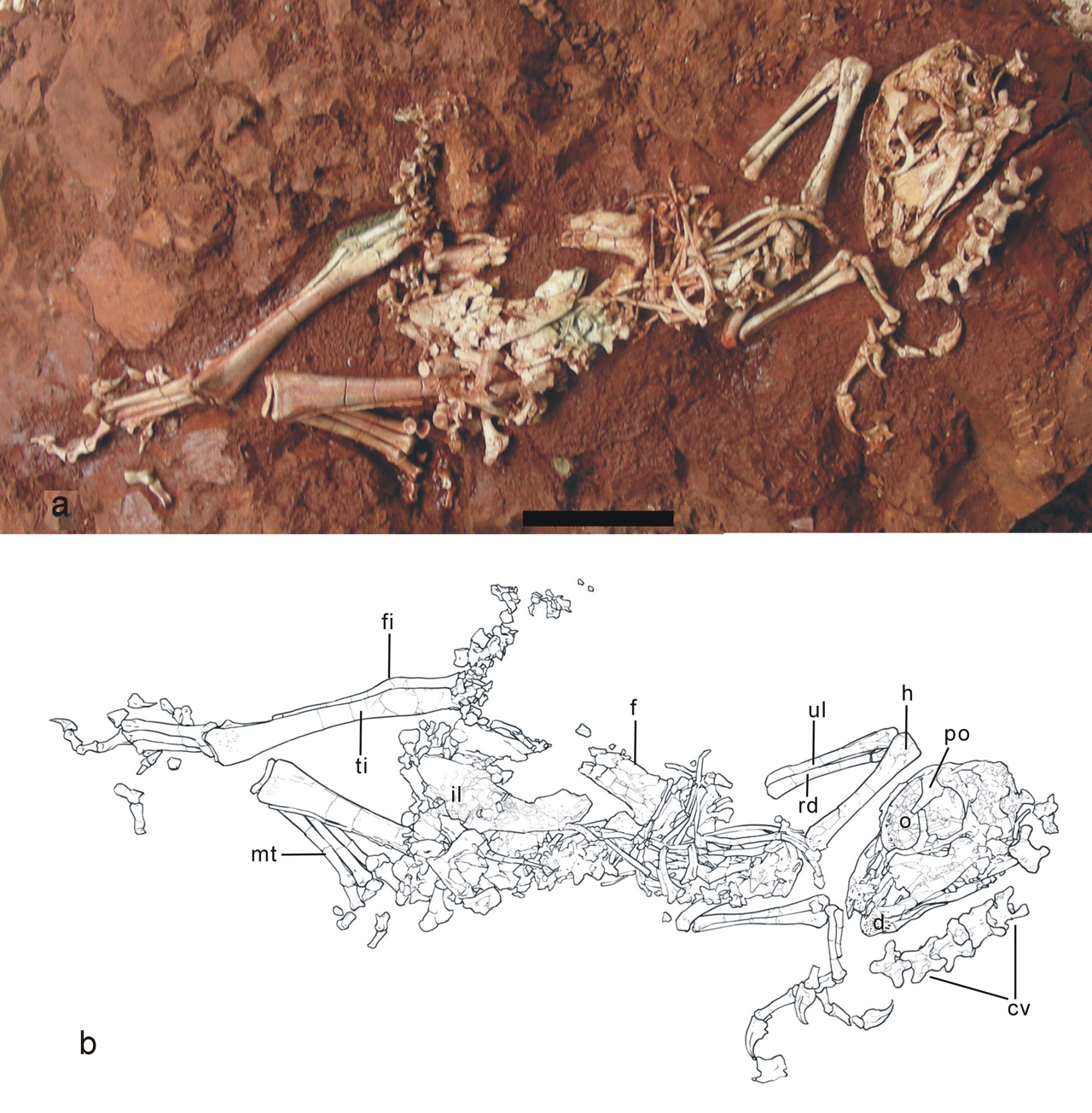 地质研究所吕君昌研究员与河南省地质博物馆及加拿大阿尔伯特大学研究人员组成的研究小组,在河南省栾川县秋扒乡晚白垩世秋扒组发现了目前已知个体最小的窃蛋龙类化石,命名为迷你豫龙(Yulong mini)。该发现近日发表在《自然科学》杂志上。
