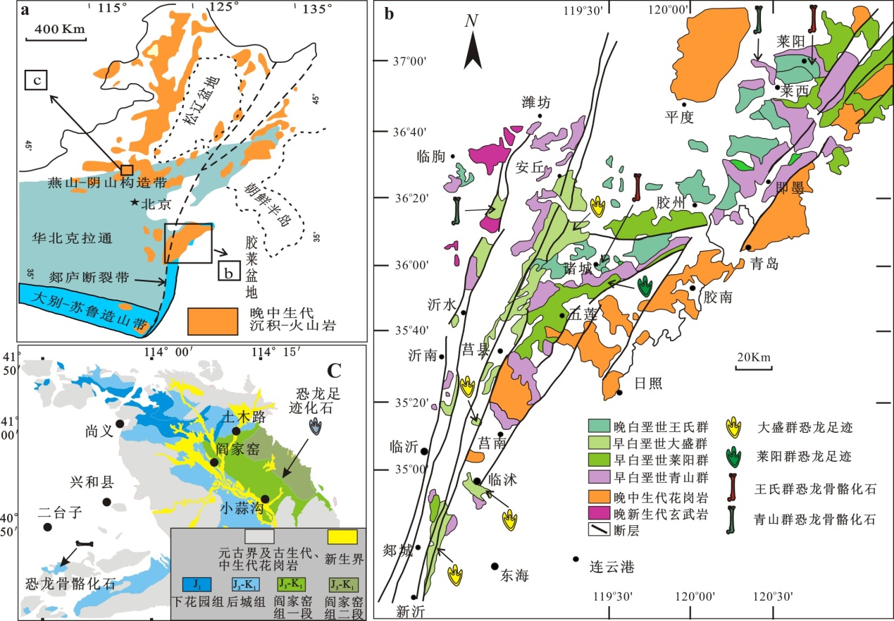 山东沂沭裂谷带和燕山西部早白垩世末期和J/K过渡期恐龙足迹化石群发现地