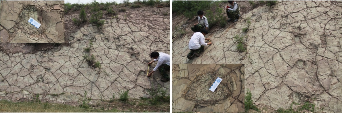 动物足迹是恢复古生态、古环境和生物古地理的重要科学证据。近日,地质研究所科研人员在鲁东、鲁西进行恐龙化石埋藏学地质调查时,沿山东沂沭裂谷带(诸城-莒南-临沭-郯城一线)发现极为壮观的早白垩世晚期(100 Ma)恐龙足迹化石群,其规模中外罕见,堪称恐龙地质遗迹奇观。