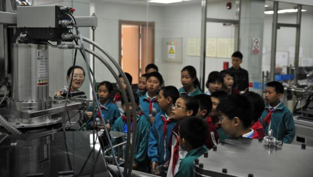 4月23日上午,北京离子探针中心北清路生命科学园实验研究基地接待了前来参观交流的展览路小学“李四光中队”的师生约40人。中心工作人员王晨和车晓超等专门制作了内容充实、图片丰富、观赏性强的幻灯演示,以通俗易懂的语言向前来参观的师生们介绍了地球的诞生及演化历史、地质年代学的发展以及中心科研人员在地球早期演化历史和月球年代学研究中所取得的部分重要成果,引起了学生们对地球科学的极大兴趣。随后,“李四光中队”的师生还参观了北京离子探针中心的两台核心仪器--“高灵敏度、高分辨率二次离子探针质谱计(SHRIMP) ”和中心的岩石样品陈列室。在整个讲解和参观的过程中,实验室工作人员和师生们形成了良好的互动交流,工作人员耐心细致地回答了师生们提出的问题。通过这种方式,让参观者了解到作为支撑学科的地质年代学在地球科学研究中的重要地位,同时让公众进一步认识了地球乃至太阳系的形成演化过程,激发了大家爱护地球家园、保护自然环境的意识和责任感。