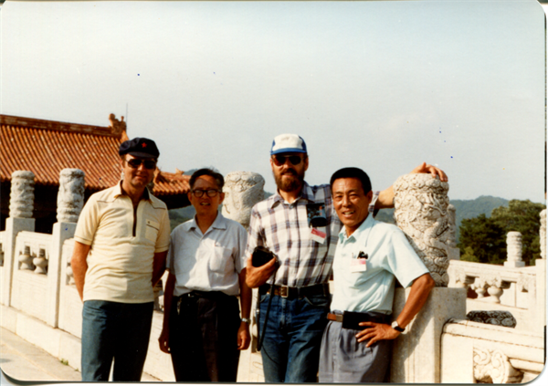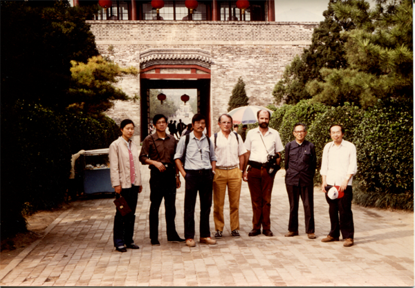 1983年在北京参加完前寒武纪与地壳演化国际学术会议后赴冀东进行野外考察,在河北遵化东陵与外国同行及张贻侠教授合影(左2为沈其韩)