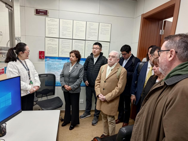 迟振卿副所长对智利代表团的来访表示了热烈的欢迎;离子探针中心副主任王晨介绍了中心基本情况并陪同外宾参观了离子探针(SHRIMP)实验室、原子探针(APT)实验室和相关配套设施。参观过程中,刘守偈副研究员向代表团介绍了中心在地球科学研究领域所取得的重要成果,车晓超副研究员则重点汇报了中心在嫦娥月球样品分析及行星科学研究方面的最新进展。智利代表团成员对中心在深空探测和地质分析方面所展现的技术实力表示高度赞赏。