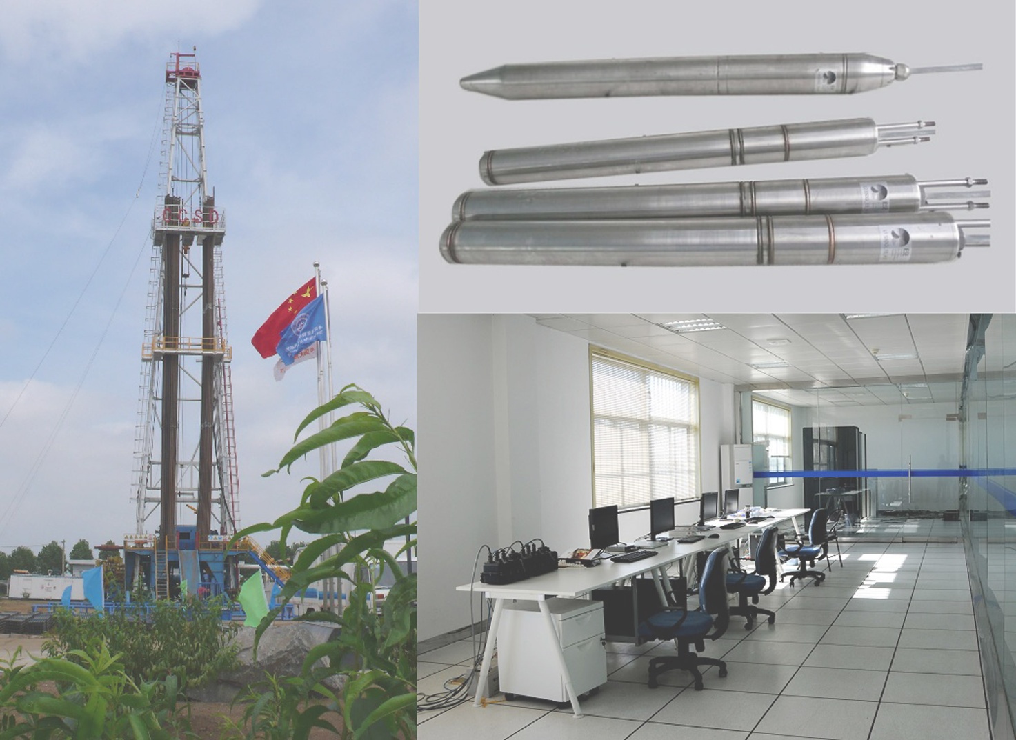 左:CCSD主孔井架,右上:深井地球物理观测设备,右下:站内观测研究实验室