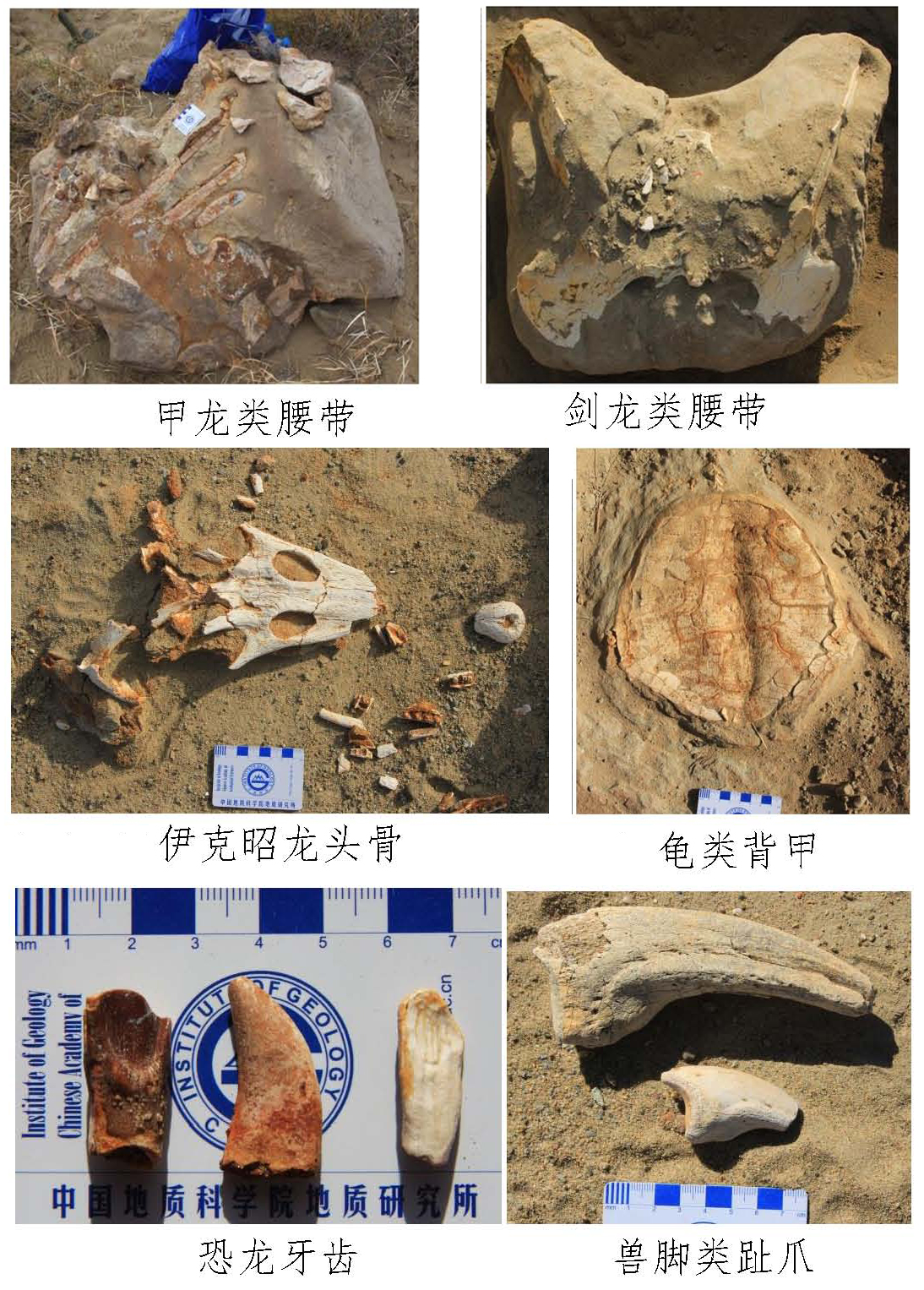 早在20世纪80年代后期,中国—加拿大恐龙考察项目曾在鄂尔多斯地区发现龟类、离龙类、恐龙等化石,但随后的20年里,再也没有科学家在这一地区开展系统的脊椎动物化石调查工作。近两年连续对该区进行脊椎动物化石的野外调查发现了较为丰富的脊椎动物化石。这些化石均保存在早白垩世地层中,初步鉴定的化石标本包括:甲龙类关联的荐椎和腰带、剑龙类关联的荐椎和腰带、剑龙类背椎与肩胛骨、龟类完整背甲、伊克昭龙近完整头骨、兽脚类和蜥脚类牙齿、兽脚类趾爪、翼龙类部分牙床,以及狼鳍鱼、恐龙类椎体和肢骨、龟类甲板碎片等。显示这是一个以恐龙为代表的早白垩世脊椎动物群。其中甲龙类、翼龙类化石在内蒙古鄂尔多斯地区为首次发现。兽脚类牙齿与趾爪、蜥脚类牙齿也极大地丰富了对这两类恐龙的认识。