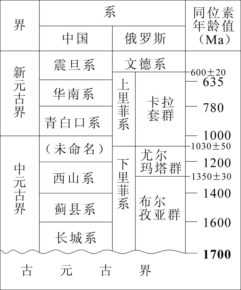 附表:国际中—新元古界地层划分对比简表