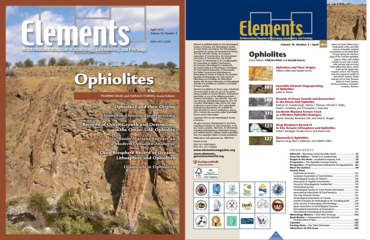 《Elements》是由美国矿物学会(Mineralogical Society of America)、英国矿物学会(Mineralogical Society of Great Britain and Ireland)、加拿大矿物学会(Mineralogical Association of Canada)、地球化学学会(Geochemical Society)、粘土矿物学会(Clay Minerals Society)、欧洲地球化学联合会(European Association of Geochemistry)、国际地球化学联合会(International Association of Geochemistry)、波兰矿物学会(Mineralogical Society of Poland)、瑞士矿物岩石学会(Swiss Society of Mineralogy and Petrology)等学术组织联合发行的地学类期刊。《Elements》自2005年开始发行,目前共出版10卷近60期。每期《Elements》都有特定的主题,如《Scientific Exploration of the Moon》(第5卷,第1期)《Water on Mars》(第2卷,第3期)、(《Zircon:Tiny but Timely》(第3卷,第1期)等等,每期都邀请研究领域的知名专家为期刊撰稿。《Elements》2013年的影响因子为4.5,是影响因子最高的地学期刊之一。