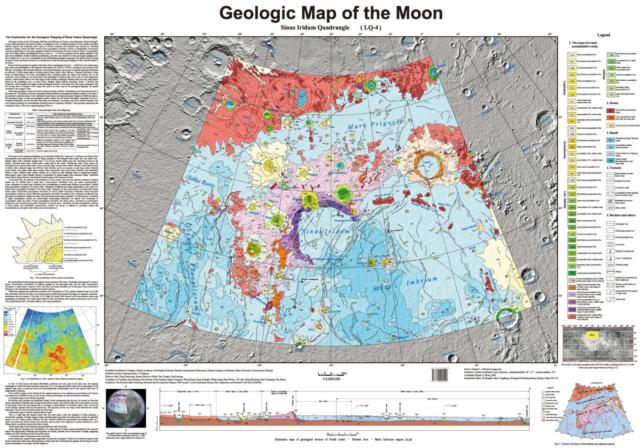 近日,由中国地质科学院地质研究所、中国科学院国家天文台与中国地质大学(北京)等编制完成的1:250万《月球地质图》(虹湾幅)中、英文版由地质出版社公开出版发行。该图是应用我国自主探月科学数据编制的首幅月球地质图,在编图过程中探索制定了月球数字地质图编制技术规范、流程和方法,为我国下一步月球探测工程的深入开展,以及应用嫦娥一号、嫦娥二号数据资料开展“全月球地质图”编制工作提供了基础地质资料和技术保障,为我国未来开展月球科学考察、地外行星探测和区域地质综合研究与编图奠定了基础。