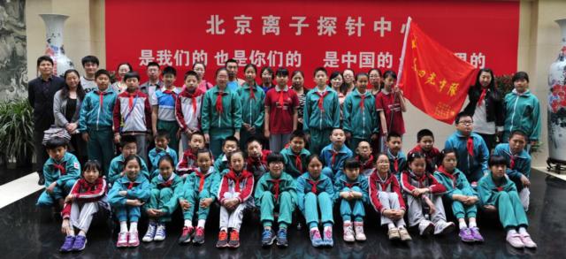参观结束后“李四光中队”的师生与实验室工作人员合影