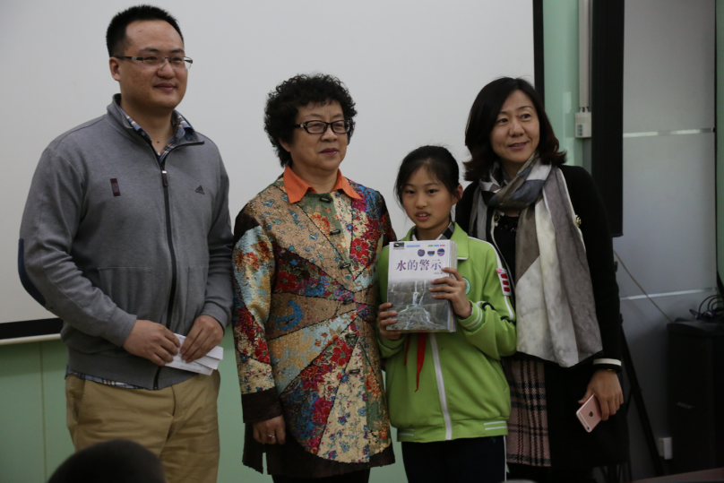 在地质所本部,科普活动分为三个环节展开:一是邀请吕君昌研究员作了一场题为“窃蛋龙窃蛋之谜”的科普讲座,他从窃蛋龙的命名、国际和国内发现的窃蛋龙化石和窃蛋龙的习性等方面,图文并茂、深入浅出地为东四九条小学师生上了一堂生动的古生物课,并就恐龙的知识开展了趣味问答,为回答正确的同学颁发了奖品。二是古生物化石保护基金会工作人员为师生们播放了《李四光》专题片,并赠送了地球奥秘科普系列丛书。三是,地质所科研人员带领东四九条师生参观了国土资源部地层古生物重点实验室。实验室主任纪占胜研究员结合地球生命孕育、演化和地质历史的画廊,为同学们普及了单细胞生物进化至人类的演化过程。同学们在科学家手把手式的指导下,在显微镜下亲眼观察了古生物化石的形貌,一睹微观世界的奇妙神秘。地层古生物实验室的科研人员用他们的热情和专业给东四九条小学师生们提供了一场知识的盛宴。