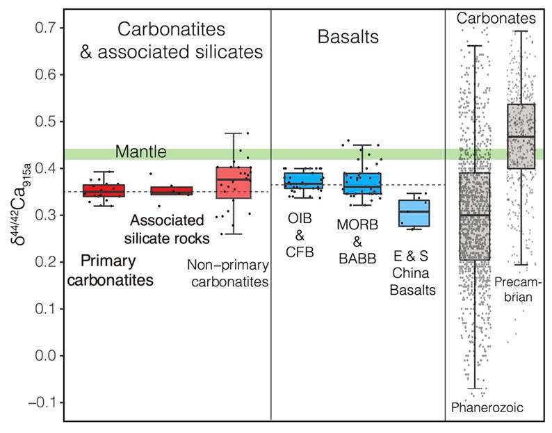 中国地质科学院地质研究所朱祥坤研究员课题组与英国牛津大学等单位合作,基于严格的条件实验,建立了一套精准高效的Ca(-Sr)同位素MC-ICPMS测试技术。对全球不同地区代表性火成碳酸岩样品开展了系统的钙同位素地球化学研究。研究结果颠覆了法国课题组近期在《Science Advance》上发表的论文的数据结果和认识(Amsellem et al., Sci. Adv. 2020; 6: eaba3269)。