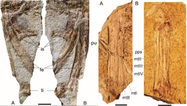 图3 腰带和股骨化石照片(左)和蹠骨化石照片(右)
