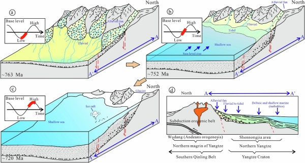 新元古代成冰纪至少发生了斯图特(Sturtian)和马里诺(Marinoan)两次雪球地球事件,但第一次雪球事件启动前地球由正常状态转变为寒冷气候的沉积响应鲜有研究且具争议。这是因为全球所有克拉通盆地,在拉伸系和成冰系之间普遍存在沉积间断,无法获得连续沉积记录来推演该时期气候的持续变化。幸运的是,扬子克拉通北缘完好保存了该时期少见且连续的地层记录,这些连续发育于不同沉积环境的碎屑岩,为从沉积学角度研究地球气候如何由温室向冰室过渡、寻找斯图特冰期前的冰川作用,以及对关键演化节点的年代约束提供了得天独厚的地质条件。