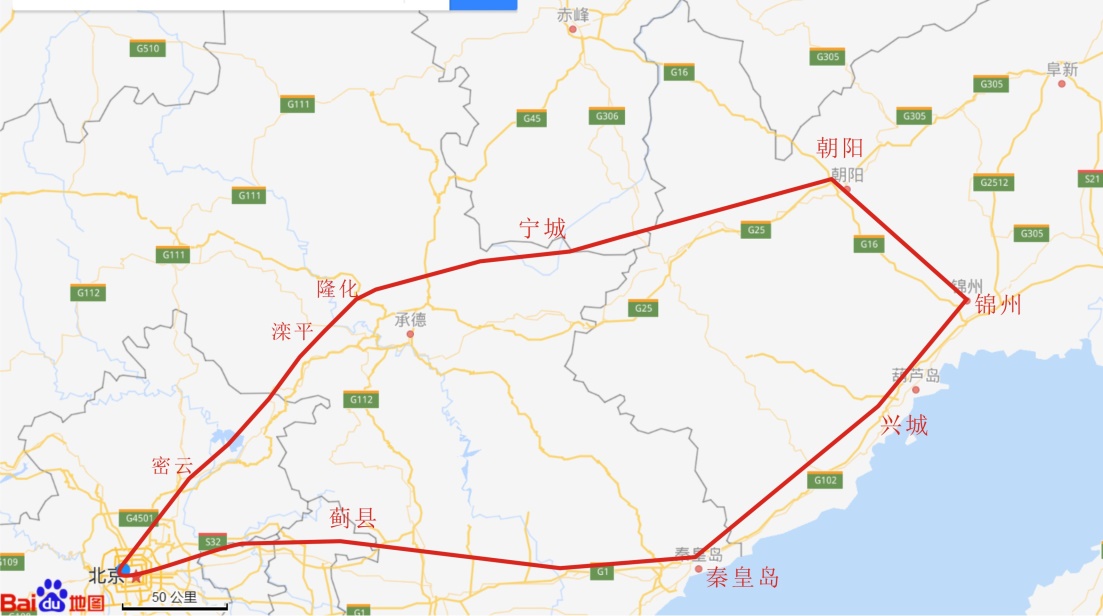 2.地点:北京、天津、河北滦平、秦皇岛、内蒙宁城县、辽宁朝阳市、锦州市和兴城市。