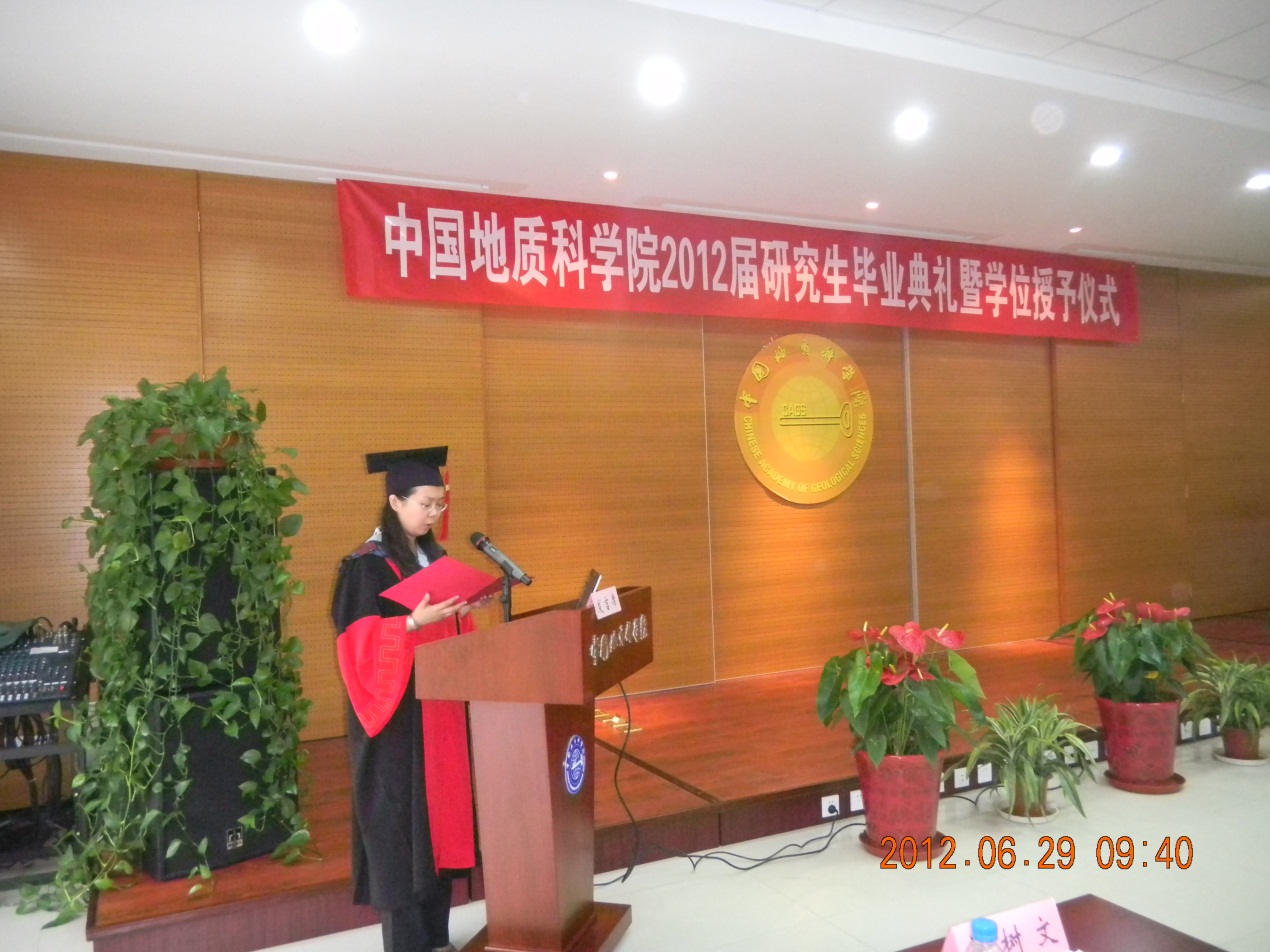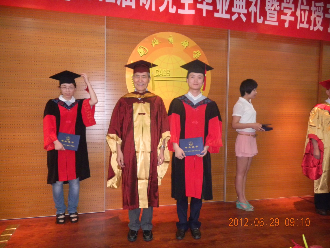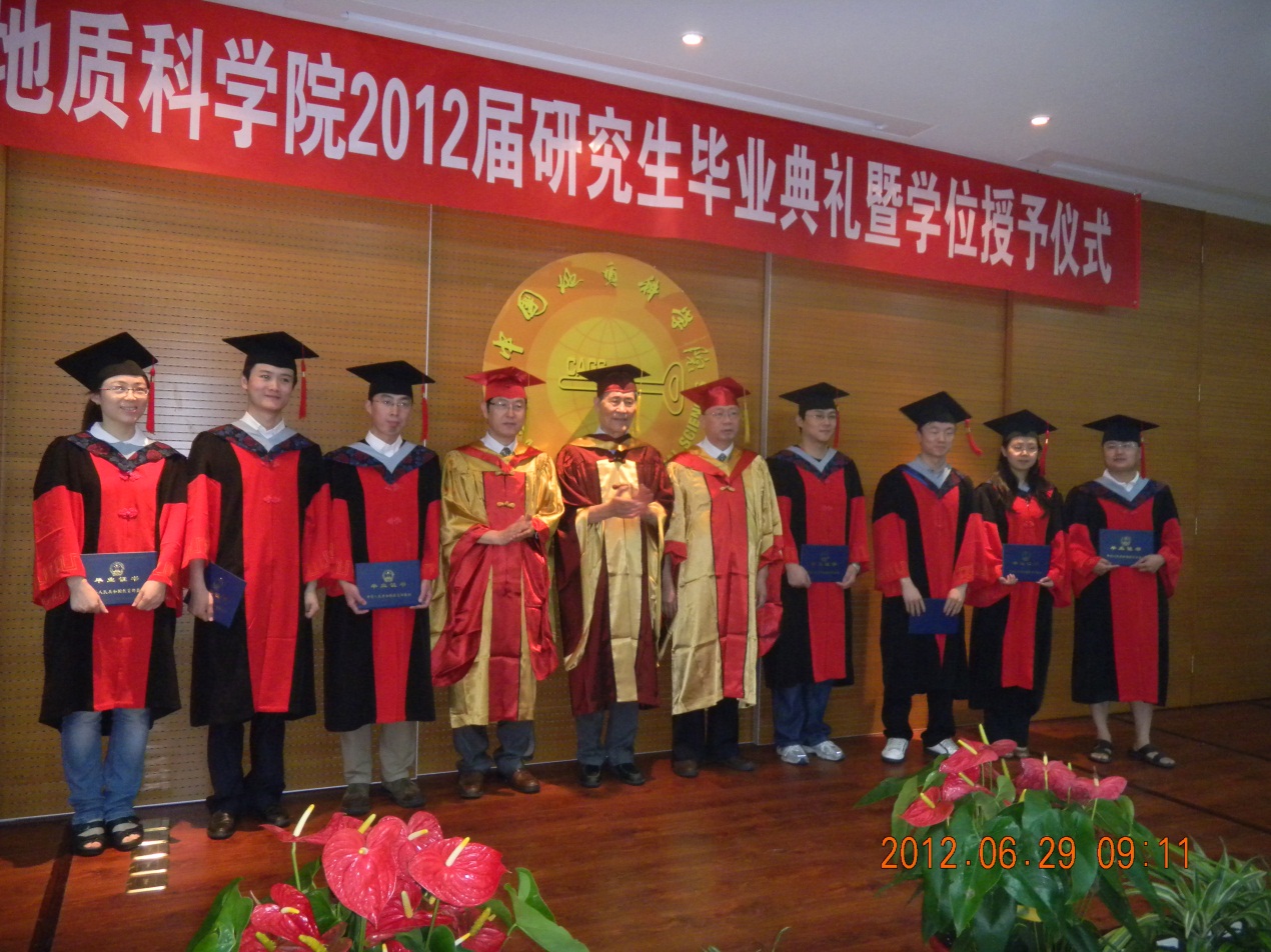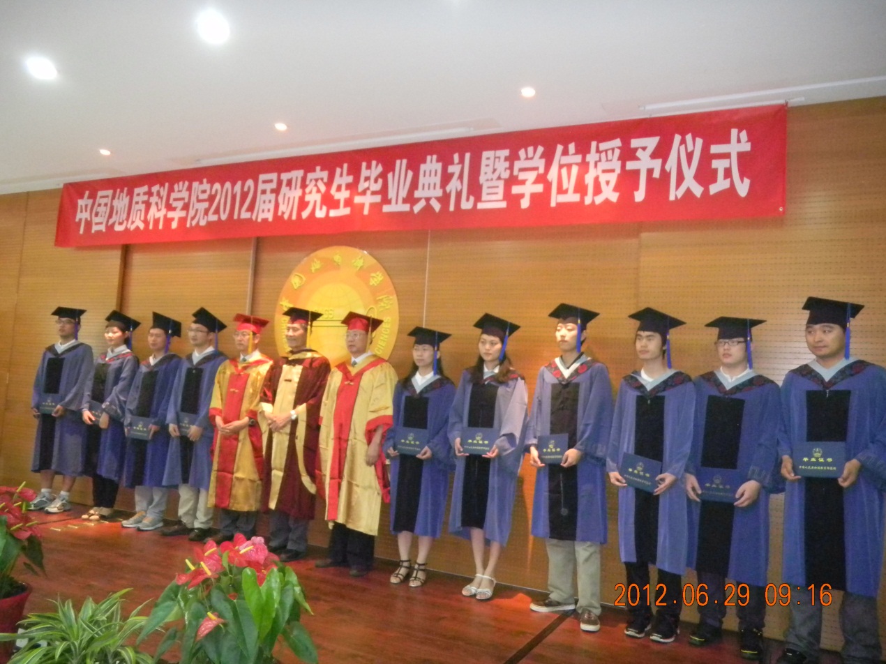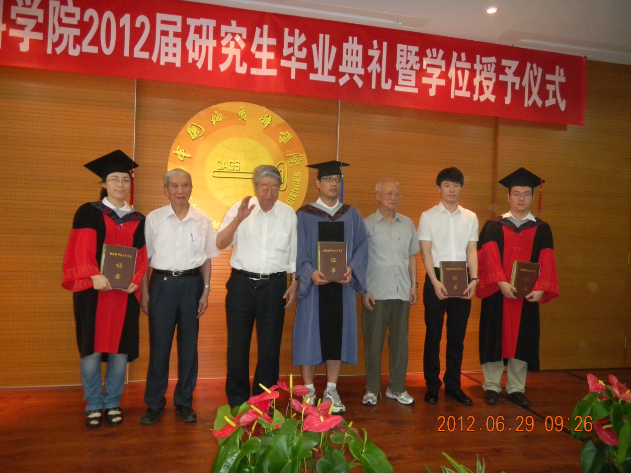 2012年6月29日,中国地质科学院2012届研究生毕业典礼暨学位授予仪式隆重举行。我所6名研究生获硕士学位,9名研究生获博士学位,2名研究生取得直博资格。