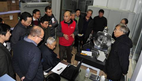 项目组向与会专家现场演示完成总装配后正在初步调试中的TOF-SIMS-REE仪器