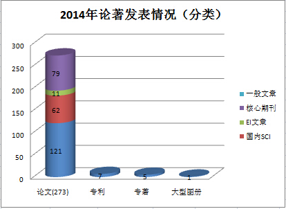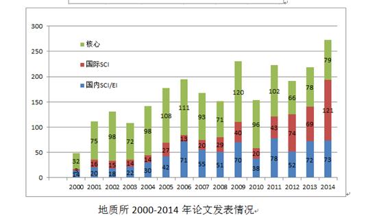 2014年度,地质所全所职工和研究生努力钻研、勇攀高峰,在论著发表方面取得了可喜的成果。据统计,以地质研究所为第一作者单位发表论文共273篇,其中国际SCI检索论文121篇,国内SCI检索论文62篇,EI检索论文11篇,国内核心论文79篇;另外,出版专著5部和大型图册/图件1套,申请专利7项,论文发表总数、SCI论文数和国际SCI论文数均创历史最高。