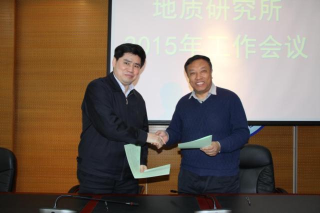 党委书记、副所长何长虹传达了全国地质调查工作会议、地科院2015年工作会议精神。所领导班子成员分别与科研和管理部门负责人代表签订了党风廉政建设责任书、安全生产责任书、综合治理责任书和保密责任书。
