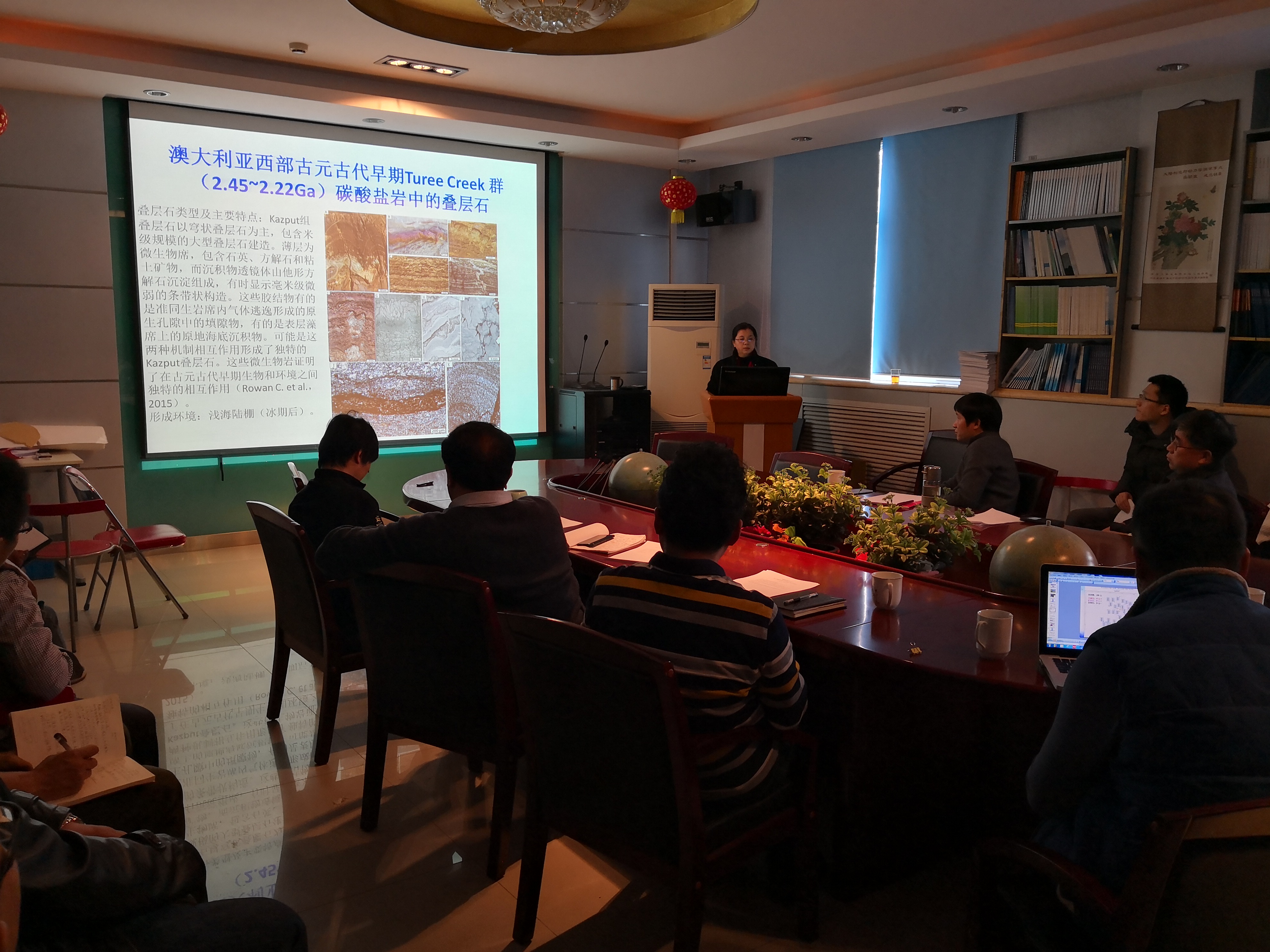 报告会上,旷红伟研究员、宋玉财研究员、贾建亮副研究员、张智宇副研究员、刘琰副研究员先后做了“前寒武系叠层石及其研究意义”、“特提斯域的密西西比河谷型铅锌矿床”、“松辽盆地四方台组砂岩型铀矿与沉积相制约关系”、“华南中生代陆壳深部物质组成演化及其对成矿制约”、“西昆仑镁质夕卡岩的成岩成矿时代及构造背景”五个学术报告。报告引起了与会人员的极大兴趣,大家就关心的问题进行了热烈的讨论。