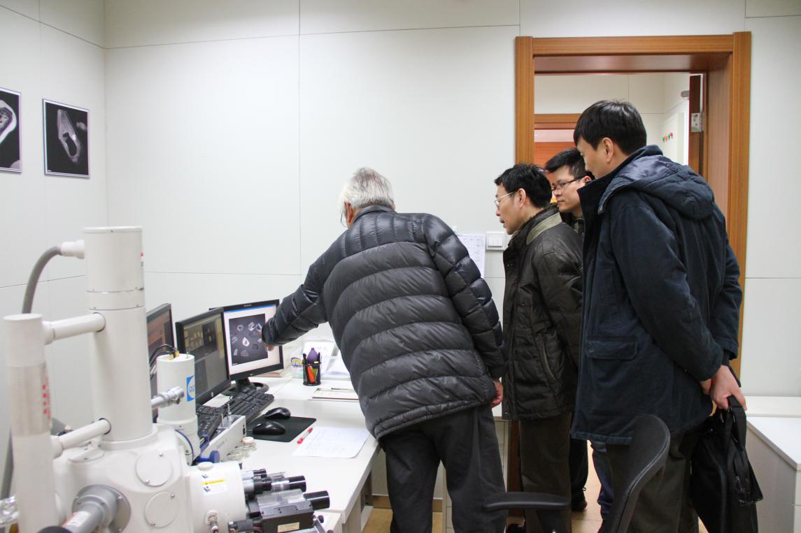 2013年12月5日下午,科学技术部国家科技基础条件平台中心(以下简称“平台中心”)戴国强主任和袁伟处长等一行5人赴北京离子探针中心北清路生命科学园新基地开展调研工作。平台中心领导首先参观了SHRIMP 实验室及配套设施和大型科学仪器远程共享网络虚拟实验研究中心;随后听取了北京离子探针中心主任刘敦一研究员关于离子探针中心建设运行情况及科研成果的汇报,并就国家科技基础条件平台的发展与中心相关人员展开了深入的讨论。