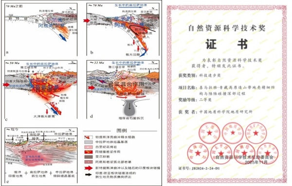 自然资源科技进步奖二等奖《喜马拉雅-青藏高原造山带地壳精细结构与陆陆碰撞深部过程》成果依托国家重点研发计划项目、国家自然科学基金委重大研究计划培育项目、面上基金等项目,利用先进的深地震反射剖面技术,探测获得了喜马拉雅-青藏高原造山带巨厚地壳(70-80km)的精细结构,建立地壳变形响应模式,对于完善大陆碰撞造山理论具有重要科学意义。本成果创新性提出印度板块俯冲前缘地壳减薄与喜马拉雅地壳加厚耦合机制新认识;揭示出南拉萨地体新生地壳增生与冈底斯成矿深源机制;厘定了印度地壳北向俯冲前缘位置及其东西向差异变形特征;阐明了北喜马拉雅片麻岩穹隆群存在差异隆升,打破了传统单一深部成因的认识框架。相关学术论文发表于Nature Geoscience、Nature Communications等国际一流学术期刊,不仅显著提升了我国深部探测研究的国际学术影响力,更为揭示大陆碰撞带壳幔相互作用规律,建立地壳变形响应模式,完善大陆碰撞造山理论提供了关键科学支撑。