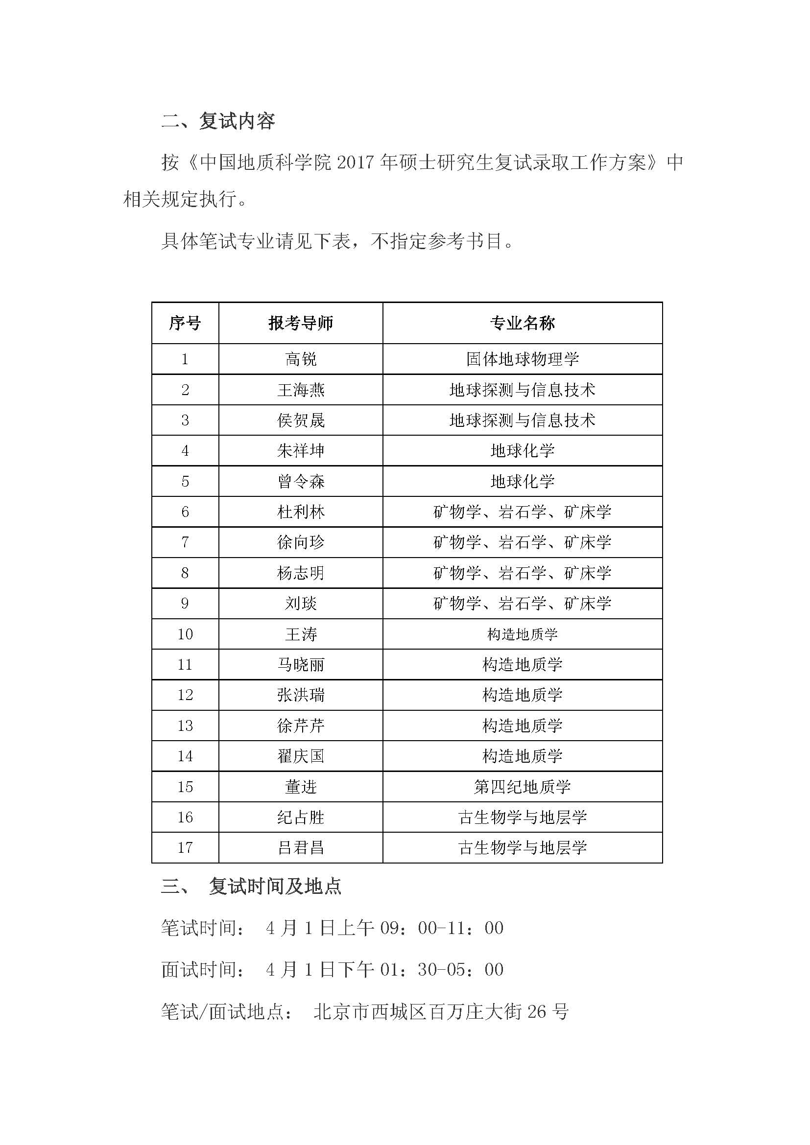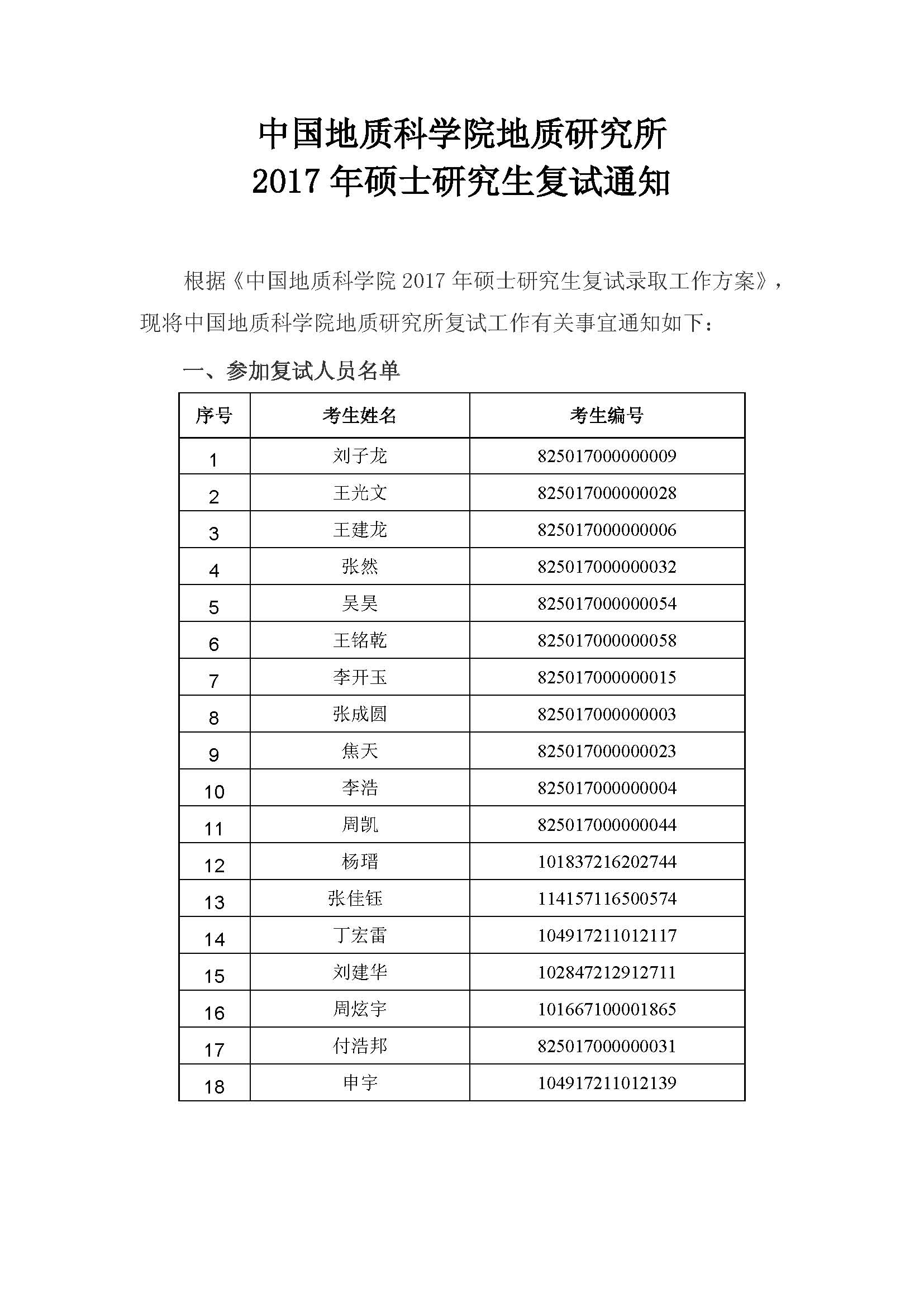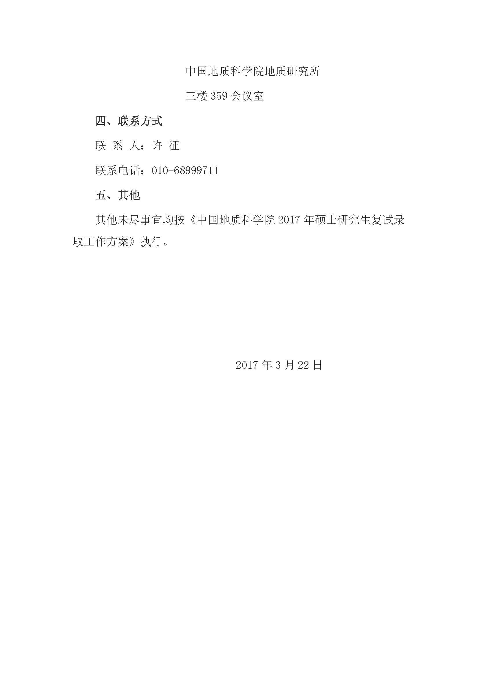 中国地质科学院地质研究所2017年硕士研究生复试通知
