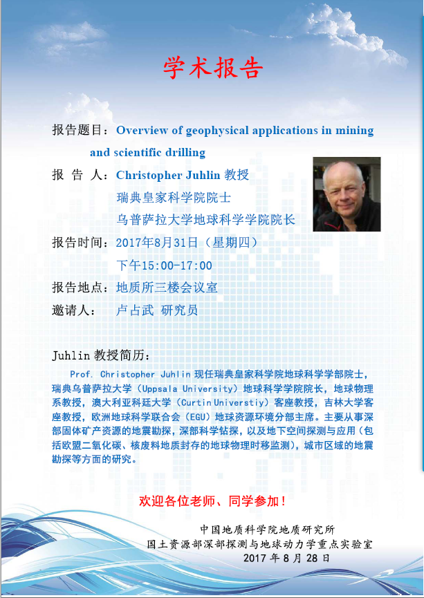 【8.31】瑞典皇家科学院院士Christopher Juhlin 教授来所做学术报告