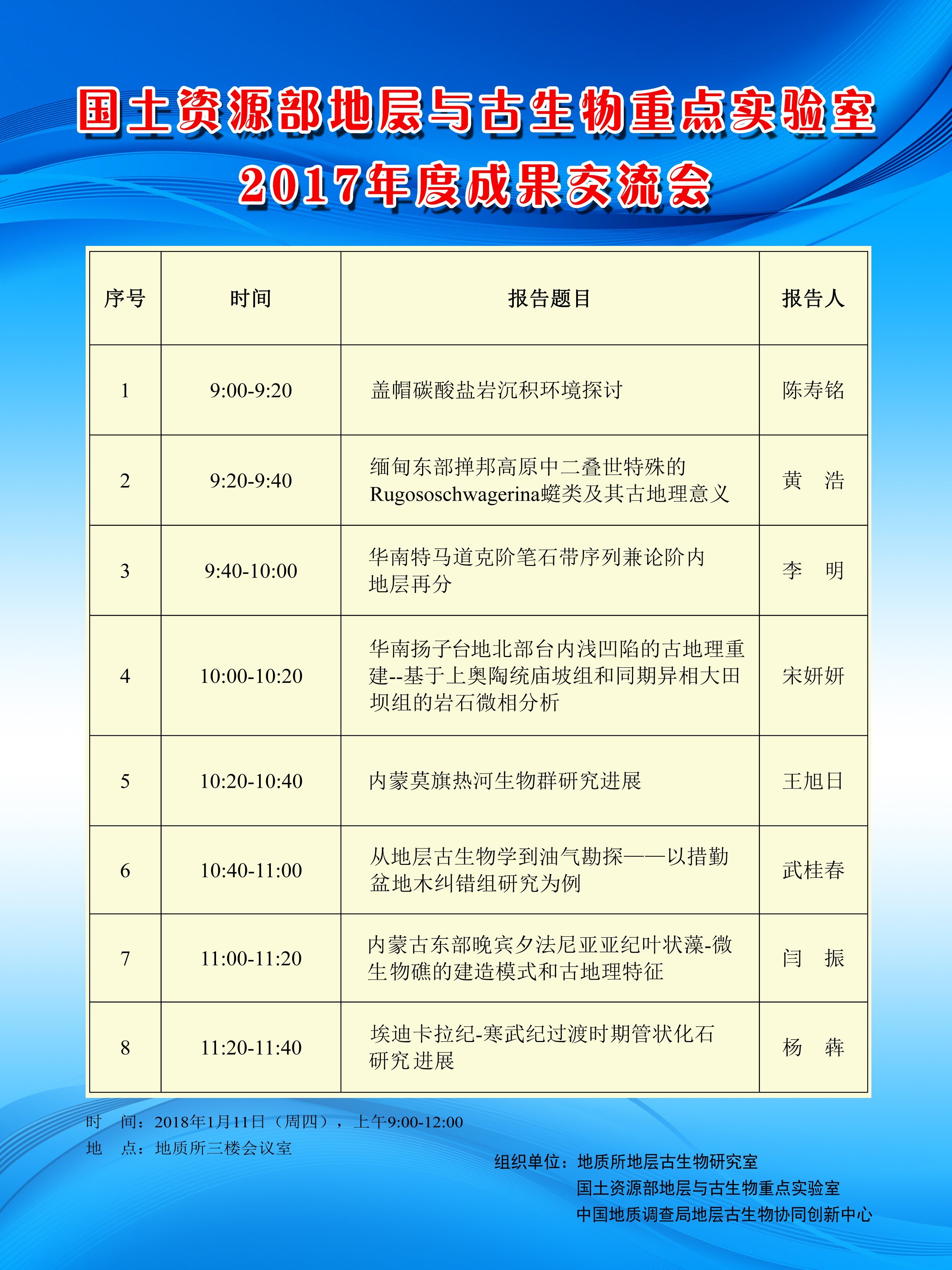 【01.11】地层与古生物研究室2017年度成果交流会