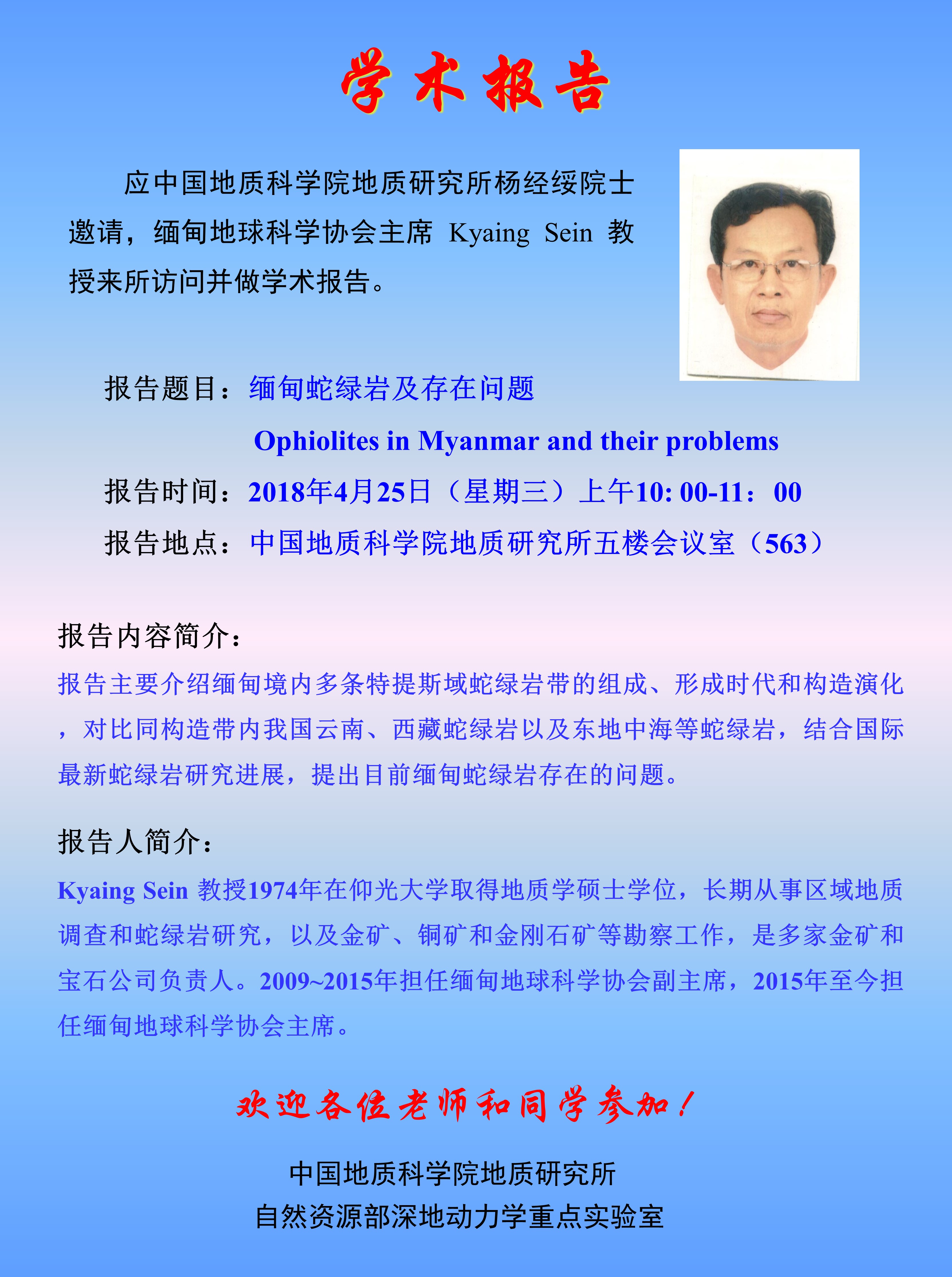 【04.25】缅甸Kyaing Sein教授学术报告:缅甸蛇绿岩及存在问题