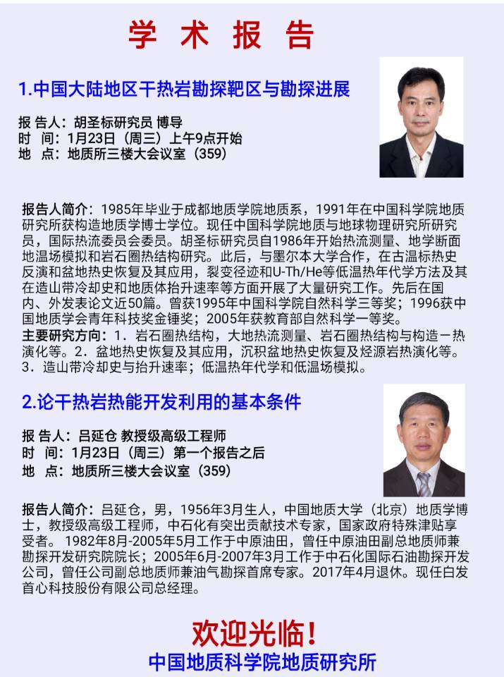 【01.23】胡圣标研究员和吕延仓教授级高级工程师来我所做干热岩相关报告