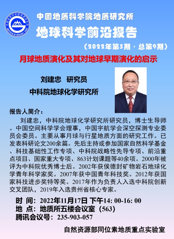 【11.17】刘建忠研究员:月球地质演化及其对地球早期演化的启示