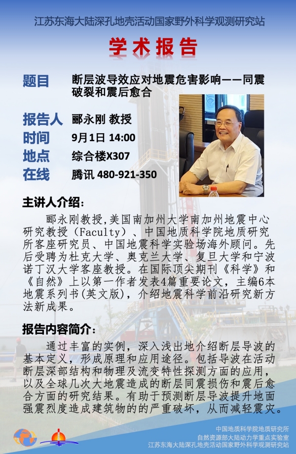 【09.01】郦永刚教授:断层波导效应对地震危害影响——同震破裂和震后愈合