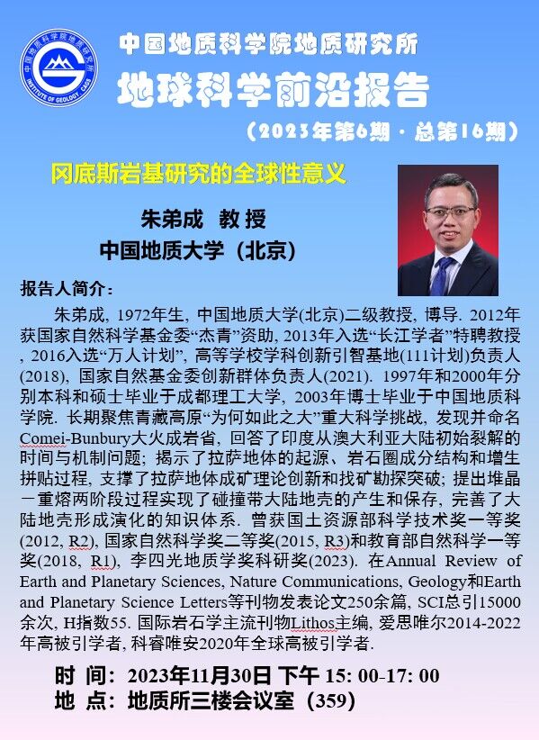 【11.30】朱弟成教授:冈底斯岩基研究的全球性意义