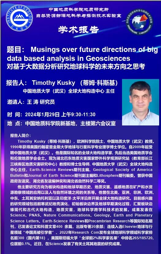 【01.29】Timothy Kusky:Musings over future directions of big data based analysis in Geosciences