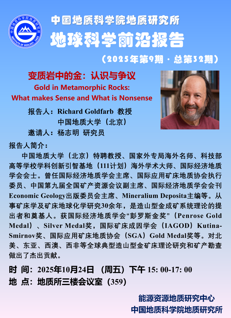 【10.24】Richard Goldfarb教授:Gold in Metamorphic Rocks: What makes Sense and What is Nonsense