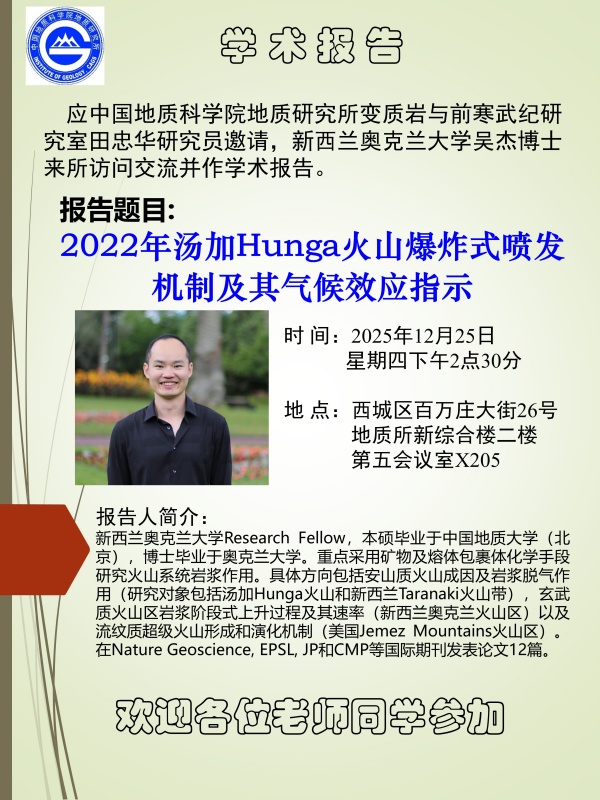 【12.25】吴杰博士:2022年汤加Hunga火山爆炸式喷发机制及其气候效应指示