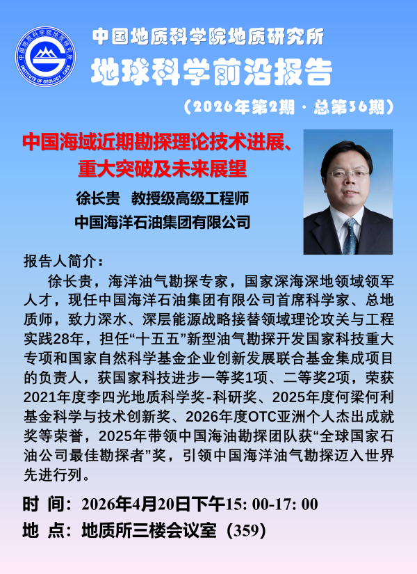 【04.15、04.16】中国地质科学院地质研究所地球科学大讲堂(2026年第1-2期)